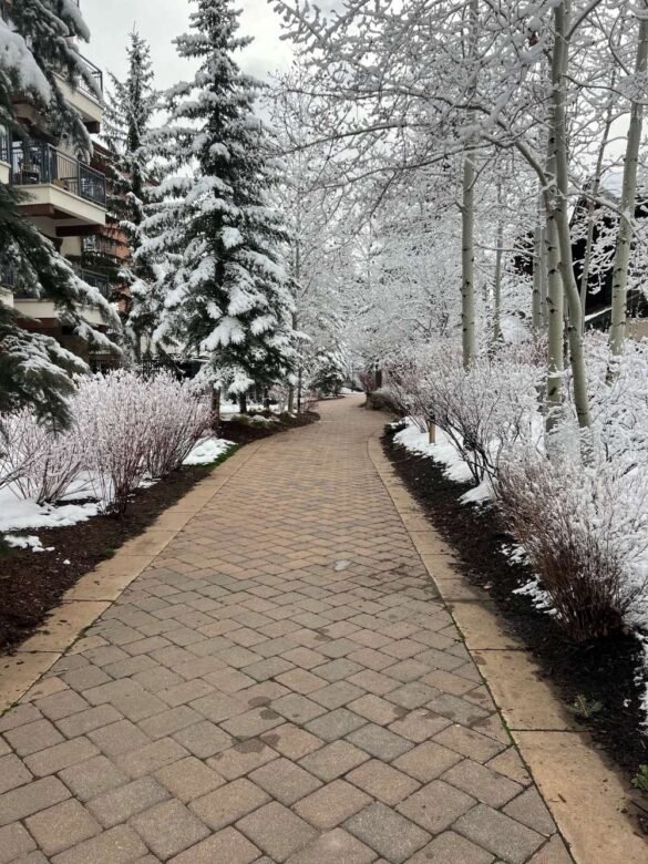 Nestled in the heart of Lionshead Village, The Hythe offers immediate access to a vibrant world of boutique shopping, exquisite dining, and the serene beauty of the Vail Valley. Plus, it’s only a few steps away from the Eagle Bahn Gondola that takes you to the top of the mountain in minutes. The walkways are heated within the property so you don’t have to drudge through the snow. However, that’s not always the case as you walk by the creek.